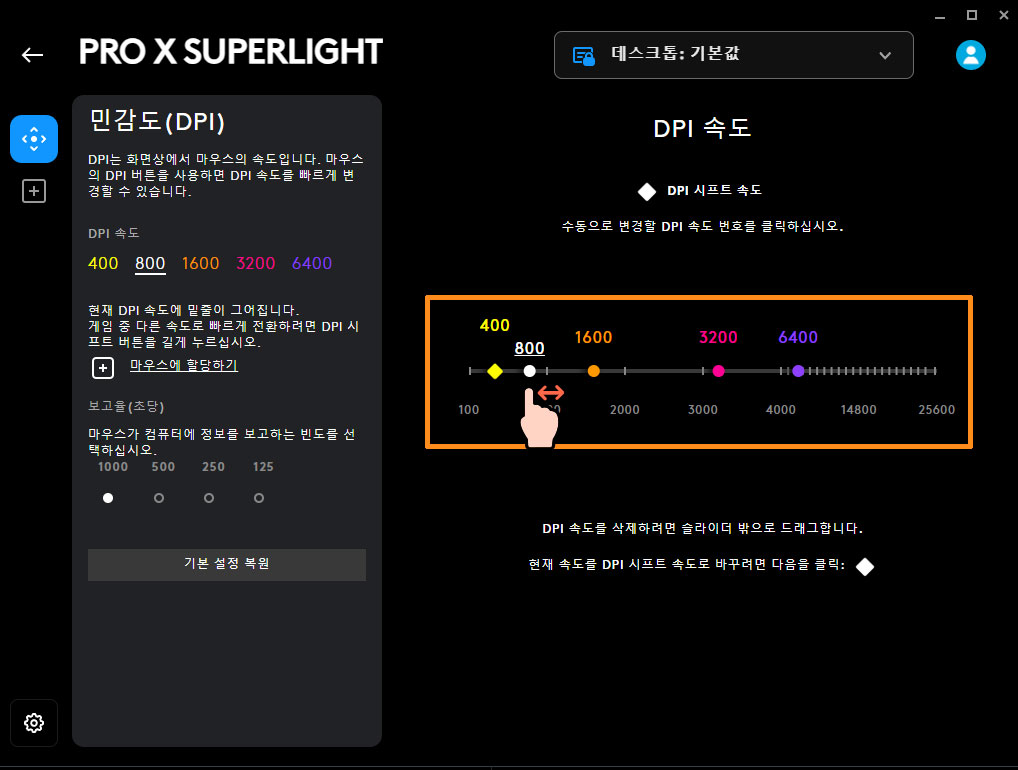 위의 하면은 민감도(DPI) 설정화면입니다.