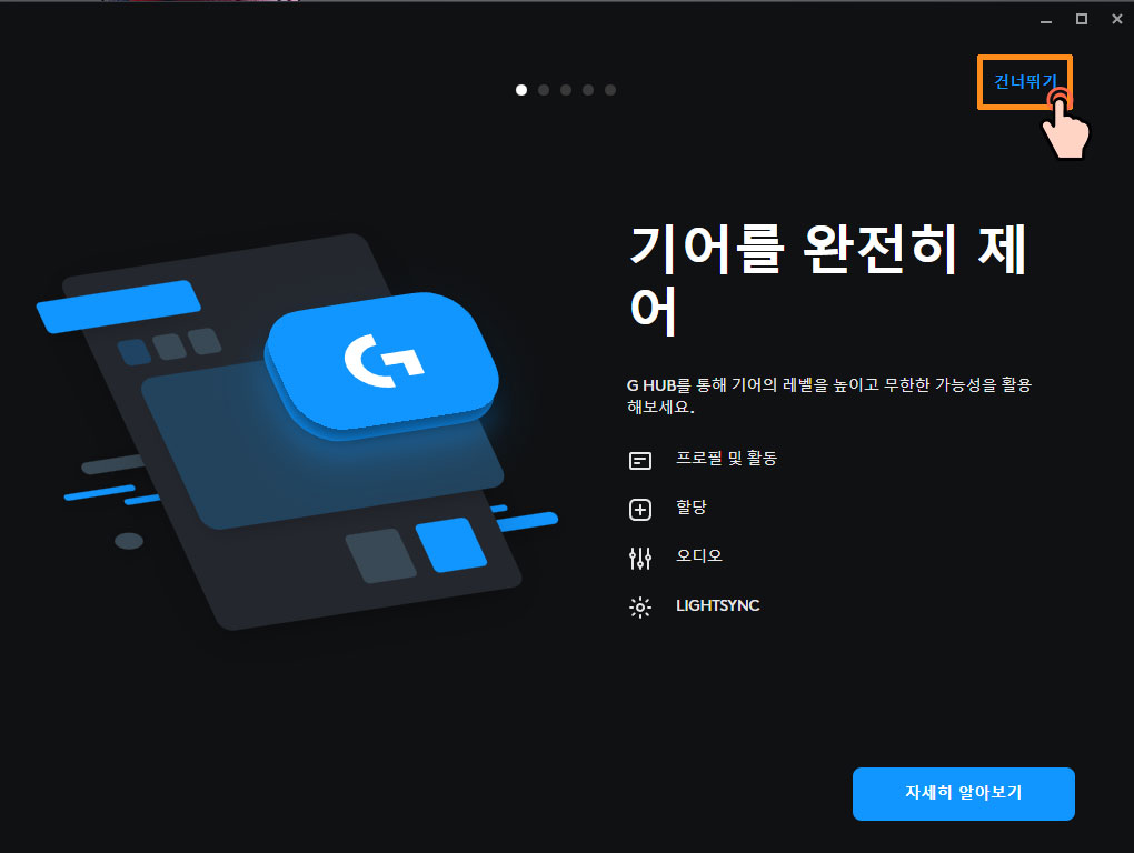 로지텍 G-HUB의 설치가 끝났으니 열어보시죠~