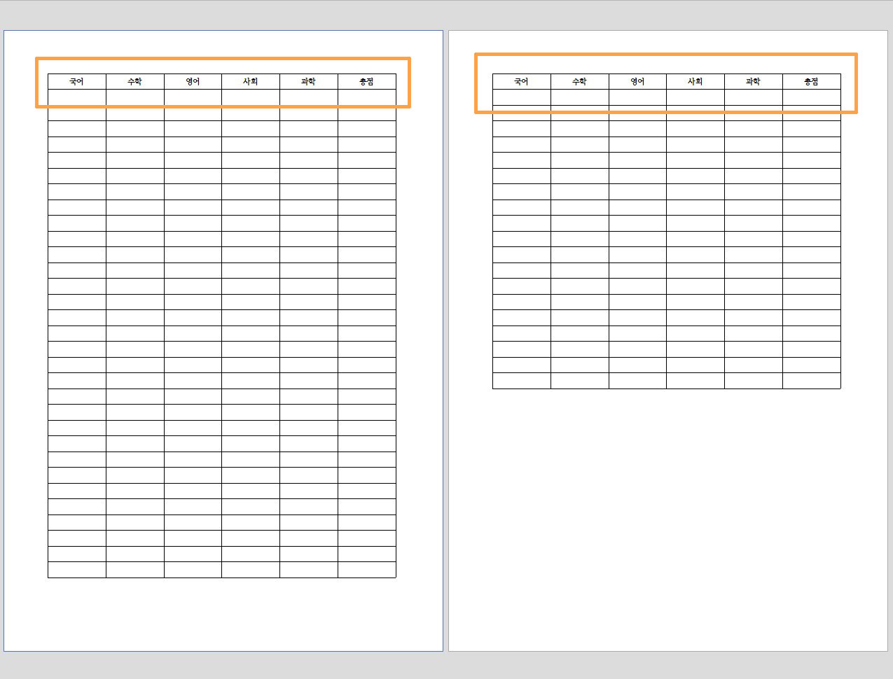 - 한글 표 첫줄 반복