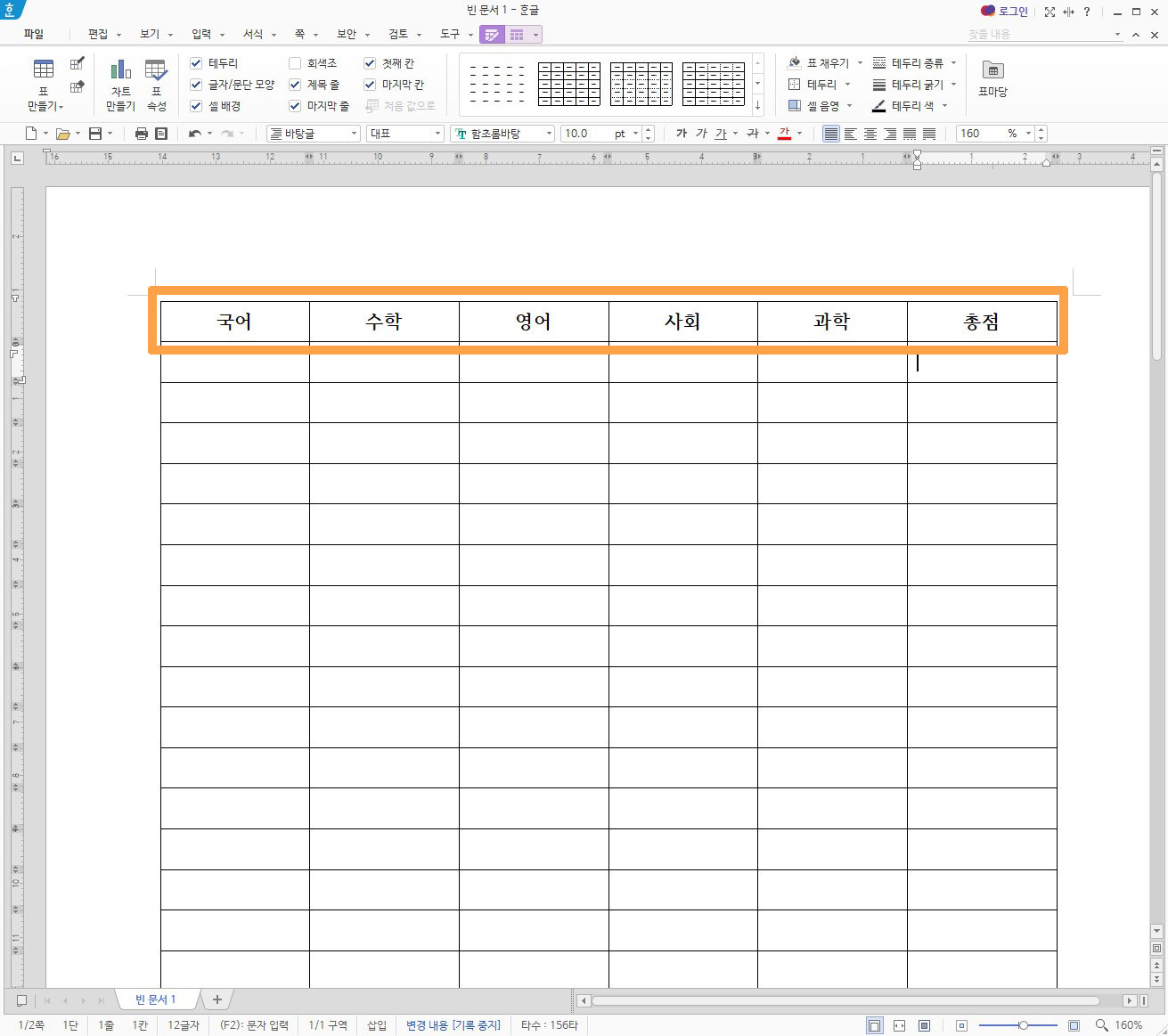 - 한글 표 첫줄