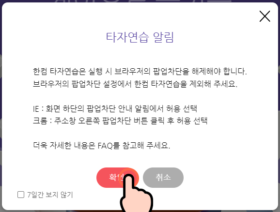 한글 타자 연습을 할 수 있었는데요.