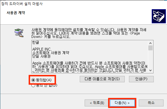 다음 버튼 클릭해서 드라이버 설치 진행해주세요.