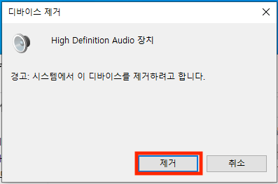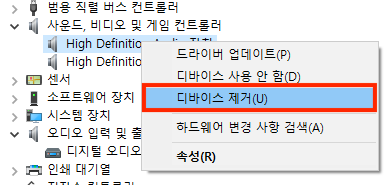 그럼 위와 같이 사운드카드 드라이버가 제거 된 것이 보이게되는데요.