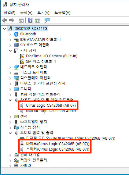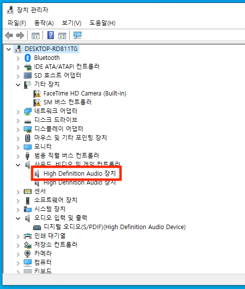 그럼 사운드 비디어 및 게임 컨트롤러에 High Definition Audio 장치 라고 되어있는데요.