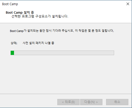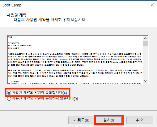 드라이버가 다 잡히고나면 BootCamp 설치 프로그램이