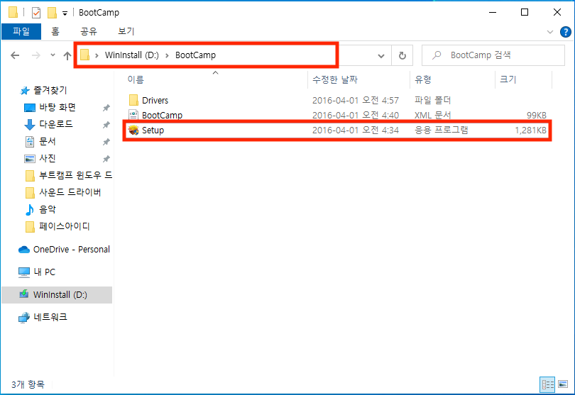 BootCamp 폴더에 Setup 파일이 있을텐데요.