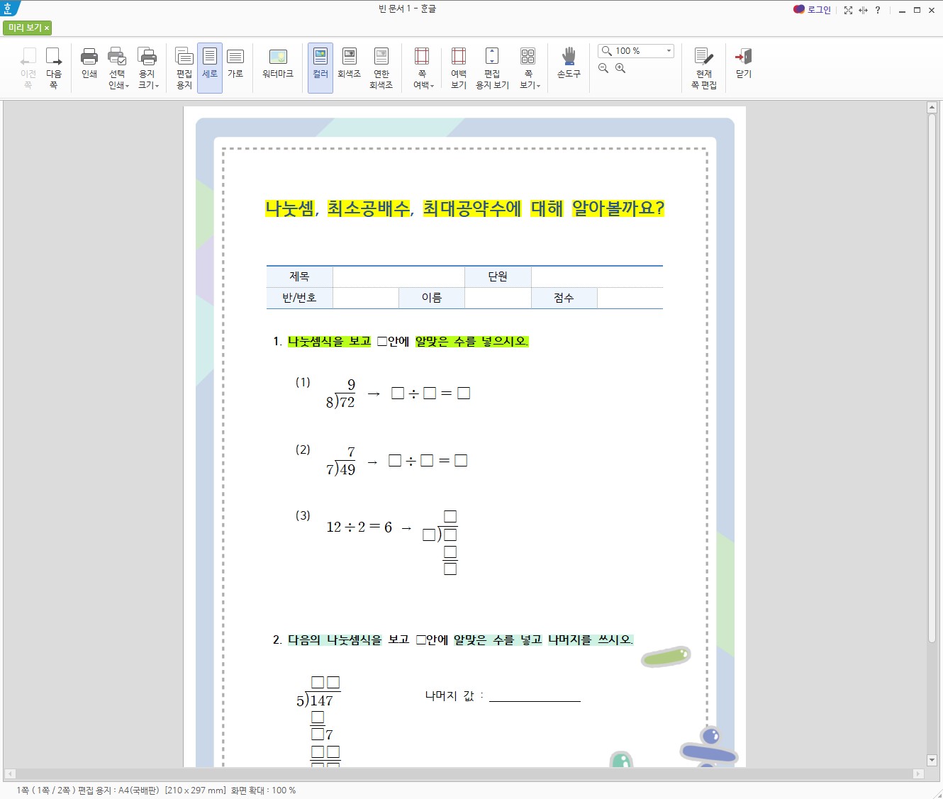 그리고 인쇄하시기 전에 설정이 문제없는지