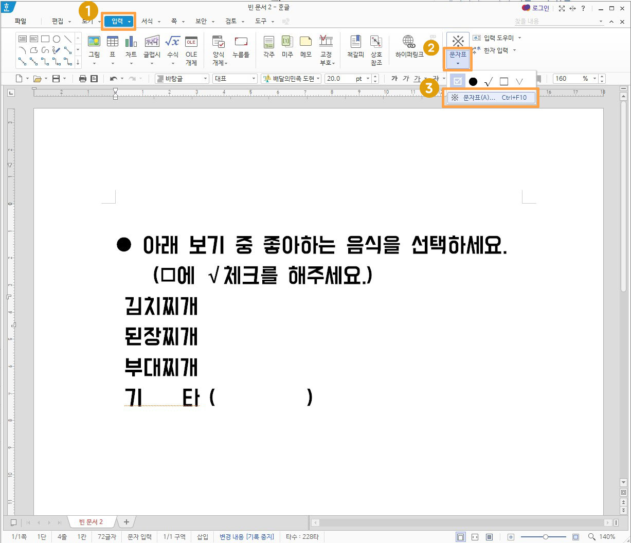 아까처럼 문자표를 열어주세요.