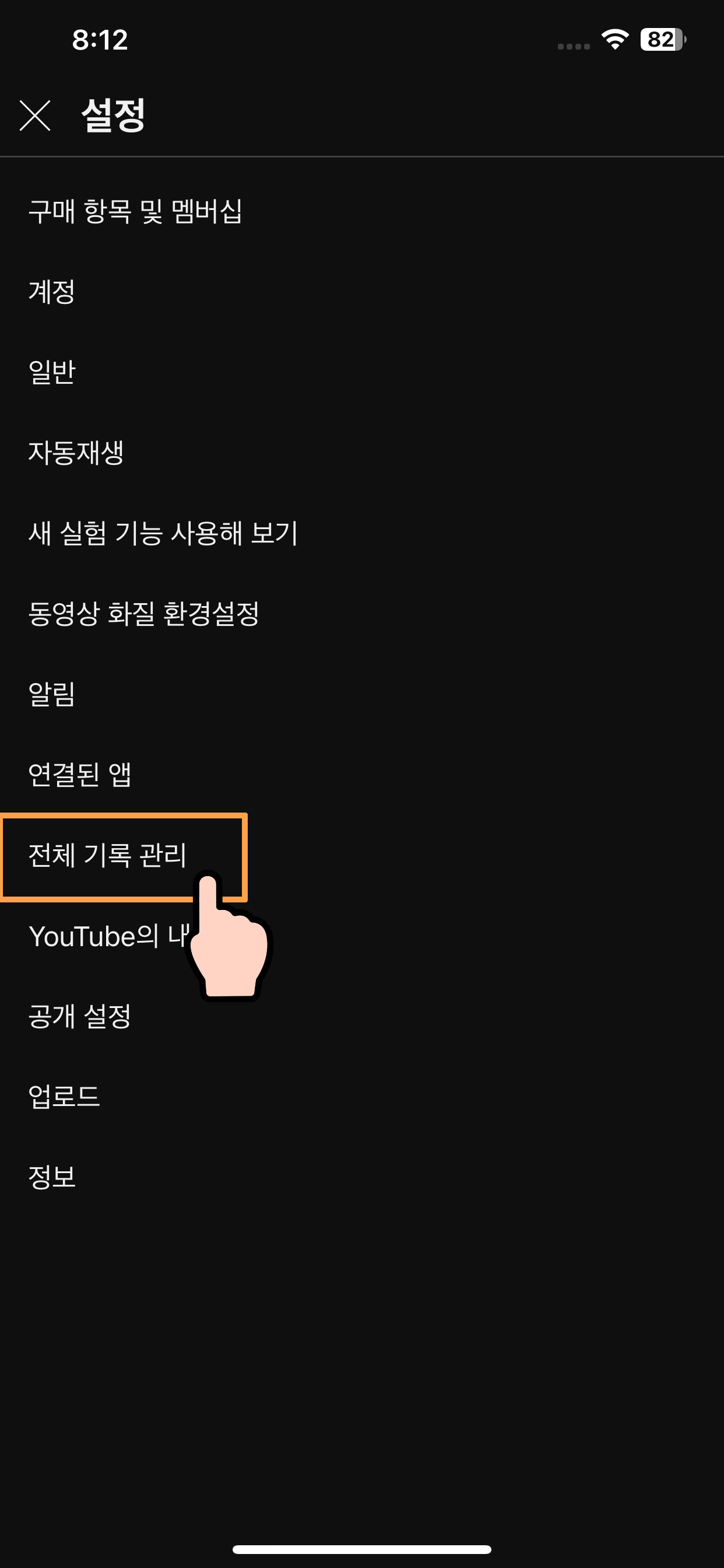 유튜브의 재생 기록 설정 화면에 들어가시고,